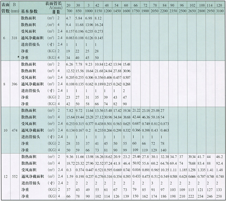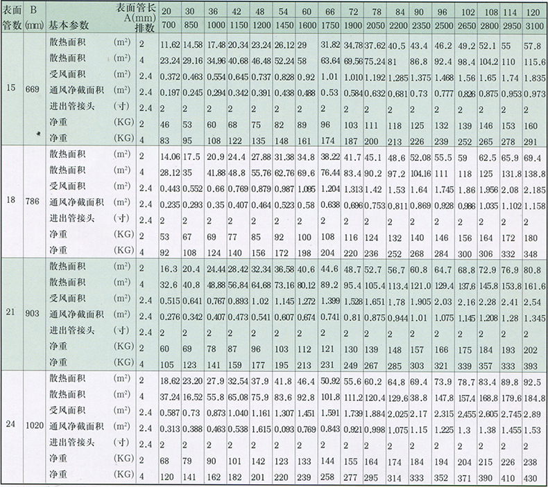 如采用四排,表面管數為10,管長為42英寸時,則為GLⅡ-4-10-42。